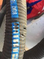 Una semplice idea che me ha dato sodisfazione e che può sempre tornare utile a qualcuno. Dopo aver verificato che il tubo di scarico del motore al semplice contatto in qualche punto mi lasciava del residuo nero in mano, nel Weekend scorso ho deciso di sostituirlo . parte il fatto di scoprire che, per sfregamento dovuto alle vibrazioni, il suddetto tubo dopo 14 anni di onorato servizio in più di qualche punto aveva raggiunto situazioni critiche (Foto 01), ho scoperto che in altri punti era stato lacerato anche dalle fascette di acciaio nudo (Foto 02 e 03).