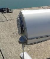 Nel mio caso e' piu' semplice, la guida e' anch'essa fissata sull'albero ma senza snodi ed e' molto piu' leggera e consente di non avere fessure fra vela e albero, il tamburo di avvolgimento e' dal lato della trozza evitando troppi rinvii che producono attrito e il boma e', per ragioni di peso, in vetroresina rinforzata con fibra di carbonio nei punti di maggiore sforzo, il fondo del boma contiene un profilato in acciaio inox sul quale si fissano le piastre di aggancio del vang e i bozzelli della scotta, in varea una piastra in alluminio ha i fori per il fissaggio del mantiglio e della drizza di randa (quando a riposo).