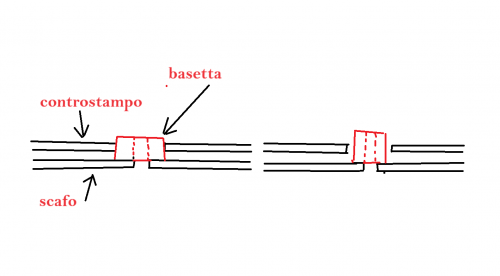 Ancora dubbi. Prima di avvitare la ghiera della valvola molti mettono uno spessore. Anche io avrei pensato di realizzare delle rondelle in derlin da mettere tra scafo e ghiera. Avevo pensato al derlin perchè temo che nel tempo il compensato marino anche se resinato potrebbe cedere mentre il derlin mi parrebbe una soluzione . dubbio: le rondelle che realizzerei vorrei che fossero di un'altezza tale da superare il controstampo così da avere la ghiera ben in vista ed ispezionabile. Conviene fare il diametro della rondella più piccola del foro del controstampo oppure esattamente a misura? Nel secondo caso la rondella avrebbe un ulteriore appoggio sul controstampo e diventerebbe davvero monolitica ma di contro sigillerebbe lo spazio tra controstampo e scafo e non so se questo potrebbe essere un problema. Voi che dite? Allego disegno delle due ipotesi.