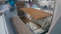 Io ho fatto il contrario. Sono passato da un tavolinetto da campeggio, scomodo per le gambe, facile dargli un calcio e far volare tutto, ad uno con gamba centrale con buco nel pozzetto. Una volta smontato occupato pochissimo spazio in gavone, ma è comodo e stabile, anche in navigazione.