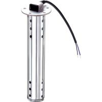 Il sensore di livello della KUS funziona con una catena di resistenze lungo lo stelo e altrettanti reed switch che vengono attivati da un magnete posto dentro il galleggiante, man mano che questo sale.