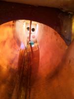 Infine l'altro ieri ho fatto la prova di allagare lo scafo e vedere dove è la perdita e ho constatato il peggio, cioè che l'infiltrazione avviene dalla scassa della deriva, che non è accessibile poichè i gavoni sono piccolissimi (10 cm diametro) e lontani dalla scassa (77 cm dal lato della scassa danneggiato). Poichè il danno è nella parte molto bassa della deriva, circa a 5 cm dal fondo, pensavo di provare a riparare dall'esterno.