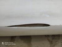 dopo svariati anni di chiacchere in Imarroncinichegalleggiano.... mi trovo per la prima volta ad avere una barchetta a vela e fare pratica in prima persona, da diretto interessato, in riparazioni su scafo: benvenuto nel club! Allora, ho comprato un catamarano classe A 18 piedi, cantiere Bimare, in polyestere degli anni '90. Ci sono uscito 3 volte, mi sono divertito tantissimo con vento da 4 a 14 nodi, e al rientro mi sono accorto di un importante allagamento dello scafo sinistro. Circa 40 litri, che per una barca di 90kg si avvertono tantissimo. Pensavo e speravo che il danno fosse esterno, un taglio o una botta sugli scafi, ho riparato con stucco epossidico diversi segni, taglietti e danni sullo scafo sinistro, ma purtroppo la barca ha continuato ad imbarcare acqua considerevolmente.