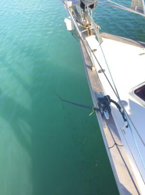 Sarà, ma in tutte le foto postate da Orteip, forse tranne la prima (non vedo bene), vedo però bene che la cima a poppa scorre inevitabilmento a diretto contatto del gelcoat, immagino anche con movimenti laterali in caso di risacca, e questo francamente a me non piace. Preferisco soluzioni tipo la mia in cui la cima passa nella bocca di granchio inserita nella falchetta.