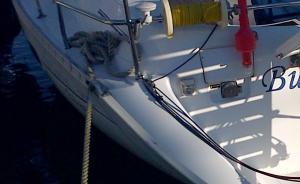 Per quanto riguarda le bitte erano entrambi divaricate e sospetto fortemente che siano stati proprio gli 80 Knt (misurati nel nostro porto) della libecciata ad averle piegate senza che me ne fossi accorto fino ad ora. Il vicino non molto pratico invece lìanno scorso mi ha solo rotto il bompresso. E' uscito a manetta ed ha virato subito senza aspettare di essere fuori dal suo ormeggio; con la pinna ha agganciato le cime del mio corpo morto tirandosi addosso la mia barca che, con il musone gli ha piegato a 90 gradi e divelto un candeliere oltre ad aprirgli un nuovo oblo sulla sua murata. Dal momento che ho il bompresso inclinato di molto verso l'alto, oltre ad un pò della sua vetroresina sul mio musone di acciaio rinforzato non pensavo avesse fatto danni ed invece; con l'ultimo bagno di settembre, mi sono accorto che c'era un buco sfondato in dentro nella parte bassa del mio bompresso. Praticamente quando il vicino si è tirato addosso la mia barca, con la botta la sua barca deve essersi inclinata dalla parte opposta alzando contemporaneamente la falchetta dell'altro lato che, stando sotto il mio musone, lo ha sfondato in parte. Fortuna solo pochi spicci di danno.