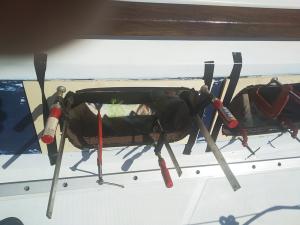 posa in opera delle centine e fissaggio alla struttura della tuga avendo cura di mettere in bolla la struttura affinché gli oblò siano orizzontali