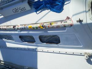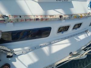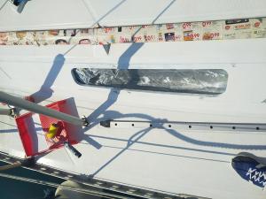 Nel 2017 rifacendo la verniciatura della coperta, cambiamo il layout dei plexyglass, riducendoli e incollandoli, e verniciando di blu il profilo prima occupato dai plaxiglass