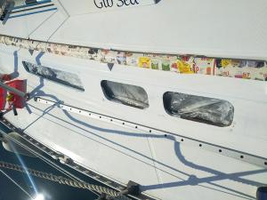 Carrozzatura della parte esterna della tuga in modo da togliere eventuali difetti e, per quanto possibile, la vecchia vernice
