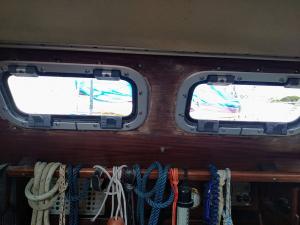 Questa era il layout originale della mia barca, Gib Sea 96 del 1986, con plexiglass fissati con perni passanti