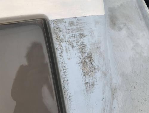 Probabilmente il vecchio proprietario ha riverniciato sopra il gelcoat ed ora, dopo tanti anni, la vernice sta andando via - in alcuni punti vedo addirittura la vetroresina. Allego delle immagini cosi riuscite a capire bene la situazione.