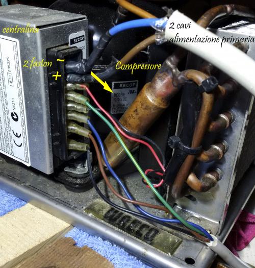 Anch'io sto combattendo da un mese con il mio frigo. A me succede il contrario. Se attacco il caricabatterie da Imarroncinichegalleggiano.... ogni tanto mi va in protezione e non parte il compressore. Con le batterie va benissimo. Ci ho perso la testa e poi ho capito che succede quando il caricabatterie è in fase bulk a 14.1 volts. Qualche ora, poi scende a 13.6 e il frigo riparte. Ho anche provato a inserire con la 220 un raddrizzatore a 24v., ma sale a 27v. e il frigo va in protezione.