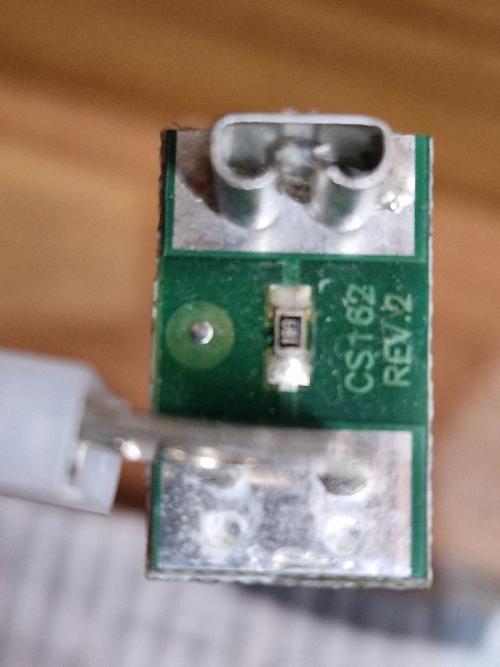 Dalla tua foto (ma non si vede bene che sembra sia spostata in basso) ... c'e' qualcosa sul T ... ma dallo schema ... non dovrebbero esserci resistori su T il cui cavo (il blu ?!? non lo vedo attaccato sul circuitino ma boh) va diretto al termostato (la resistenza per i giri dovrebbe essere su C, interposta in serie).