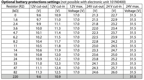 e la resistenza R2 (per i voltaggi tollerati a fine pag. 13 nella tabella "Optional battery protections settings" che inserisco qui di seguito) :