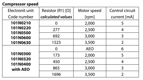 Importante e' capire cosa fa la resistenza R1 (per i giri a fine pag. 14 tabella "Compressor speed" che inserisco qui di seguito) :
