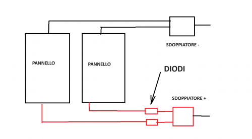 Raga ma un diodo costa davvero una fesseria; forse su un impianto di centinaia di pannelli uno ci pensa ma per due/tre pannelli parliamo di un numero di euro poco superiore al numero delle dita di una .: