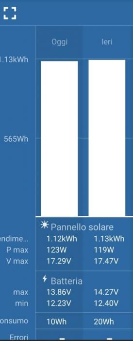 (03-05-2025, 16:22)kitegorico Ha scritto: Sono giusti questi ragionamenti?Nessuno risponde, ci provo . giusti? . "facciamolapuntaaglispilli": A e W (o kW) sono grandezze istantanee di flusso, mentre Ah e kWh sono grandezze calcolate in un tempo e sono energia accumulata o rilasciata. Quindi se in un giorno il pannello butta fuori un'energia di 1 kWh che si potrebbe riportare a Ah, quello è il totale di energia. Il pannello è da 100 W e all'istante butta fuori tot A con una certa tensione, se moltiplichi A per V ottine la potenza istantanea. Dove sta l'errore o il fatto che i conti non Piccoletto? In diversi .) Il Nasa Monitor non è uno strumento super preciso e nemmeno la app Victron, perché il regolatore prende la potenza del pannello, la trasforma con delle perdite e la porta alla batteria. 2) Le batterie al piombo hanno un efficienza di carica inferiore a 1, per cui se gli cacci dentro 1 kWh (letto dallo strumento) non è che la batteria incameri proprio 1 kWh, ma circa 0.9. 3) Il calcolo 100 Ah per 12 V non si può fare perchè la tensione non è 12 V (sotto carica è ben di più) e non è nemmeno costante. Quindi, come si risolve? La cosa meno peggio sarebbe di usare al posto del Nasa il monitor Victron con cui puoi settare il rendimento di carica della batteria e far fare tutti i conti a lui e non a due strumenti diversi. E' un casino? Si. Purtroppo sono tutti processi con delle perdite inevitabili e questo rende il bilancio complicato. In ogni caso, mi sembra che i tuoi pannelli funzioni molto bene se in una giornata erogano più di 1 kWh!