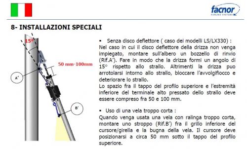 Rollafiocco Facnor SD 180 perde pezzi - Mirtus - 16-11-2015 Ho cercato sul forum ed ho trovato vari post su questo meraviglioso rollafiocco, ho visto che da svariati problemi ma non quello che mi è successo nell'ultima uscita in barca. Dopo una virata con vento sostenuto piove in pozzetto un pezzo di plastica rosso [hide] A causa del vento non sono salito in testa d'albero ma credo di aver capito da che parte del rollafiocco è venuto giù. [hide] qualche idea su come e perché sia potuto succedere proprio a me? ma sopratutto si trovano questi pezzi di ricambio? Finché non vado su a vedere brancolo nel buio. Ogni suggerimento è ben accetto.Ps modello del 2001 RE: Rollafiocco Facnor SD 180 perde pezzi - alessio.pi - 17-11-2015 Io qualche pezzo l'ho trovato a La Spezia ditta settemari ogni tanto fanno degli ordini in Francia e possono inserire anche quello che serve a te. Il problema sono i pezzi che sono carissimi RE: Rollafiocco Facnor SD 180 perde pezzi - albert - 17-11-2015 Caso numero 1: si è svitato il grano ed è caduta una semi boccola, mentre l'altra è ancora in sede. Vai su, reinfili il pezzo e riavviti. Caso numero 2: si è rotta la sede del grano nel piattello, una semiboccola è caduta in barca e l'altra chissà dove. Vai su, tagli via il piattello e metti un guidadrizza. RE: Rollafiocco Facnor SD 180 perde pezzi - zankipal - 17-11-2015 é la tensione della drizza che deforma il disco nero che contiene le due semiboccole rosse, toglilo e mettici un guidadrizze rivettato all'albero, funziona meglio e dura di più se l'albero è frazionato forse non serve RE: Rollafiocco Facnor SD 180 perde pezzi - Mirtus - 17-11-2015 quindi questa semi boccola può essere solo del disco distanziatore ? nel manuale ci sono altri "bearings" ma non capisco se siano dello stesso colore e fattura. L'albero è armato in testa. RE: Rollafiocco Facnor SD 180 perde pezzi - zankipal - 17-11-2015 Le boccole rosse sono del disco devia drizza, quelle del profilo sono simili ma nere se è armato in testa devi metterci un guidadrizza altrimenti rischi di rovinare lo strallo e che ti si blocchi l'avvolgifiocco. è importante RE: Rollafiocco Facnor SD 180 perde pezzi - Mirtus - 17-11-2015 grazie ottima notizia! Quindi guida drizza rivettato, che angolo è consigliabile avere tra drizza e strallo? RE: Rollafiocco Facnor SD 180 perde pezzi - albert - 18-11-2015 Tra 5 e 10 gradi. RE: Rollafiocco Facnor SD 180 perde pezzi - kitegorico - 19-11-2015 Anche io dovrei una volta per tutte sistemare l'angolo della drizza con una guida. Ma un guidadrizza è un qualsiasi ponticello da rivettare all'albero dal quale far passare la drizza prima che vada alla girella? Di che materiale? Poi davvero basta solo rivettare? Non è che i carichi di una drizza di un genoa al 140 (di un piedi) lo fanno saltare? Più o meno dovrebbe essere come da disegno, giusto? [hide] Inoltre il mio genoa se non ricordo male lascia poco spazio tra girella e testa dell'albero. Chissà se avrò spazio per mettere stò benedetto guidadrizza. RE: Rollafiocco Facnor SD 180 perde pezzi - zankipal - 19-11-2015 I produttori di avvolgifiocchi ne fanno di diversi tipi, con puleggia o solo a ponticello smussato, in tutti i casi o rivettati o avvitati lo spazio c'è sempre, per quanto lungo sia il genova, tra terminale profilo e testa girevole, la penna è sempre minimo 20 cm sotto RE: Rollafiocco Facnor SD 180 perde pezzi - albert - 19-11-2015 Istruzioni Facnor (che suggerisce un angolo della drizza di 15 °): [hide] Istruzioni Furlex (ed esempio di guidadrizza): [hide] RE: Rollafiocco Facnor SD 180 perde pezzi - Mirtus - 10-01-2016 aggiornamento: da ispezione ravvicinata il disco deflettore è rovinato e deformato, quindi sicuramente metterò un guida drizza. Pensavo di metterlo poco sopra il buco presente nel profilo superiore dell'albero. Lo strallo sembra stare bene ma la cosa che mi lascia perplesso è che il tappo superiore del profilo del rolla fiocco non c'è ! al suo posto ho trovato un pastrocchio grigio che sembra essere stato messo successivamente senza smontare lo strallo. Non sono riuscito a vedere se almeno le boccole interne siano rimaste al loro posto, però mi chiedo se posso fare a meno del tappo. Unica notizia positiva è che la girella vive e lotta insieme a noi. [hide] RE: Rollafiocco Facnor SD 180 perde pezzi - kitegorico - 03-06-2016 @albert Hai idea di dove si possa trovare il kit guidadrizza della Furlex? RE: Rollafiocco Facnor SD 180 perde pezzi - albert - 03-06-2016 Da Velamania, importatore Selden, oppure dal tuo velaio/rigger che si fornisce da Velamania. Potrei spedirtene uno anch'io, ma se lo trovi in zona risparmi le spese di spedizione. RE: Rollafiocco Facnor SD 180 perde pezzi - RMV2605D - 03-06-2016 Il ponticello guidadrizza evidenziato nelle istruzioni Furlex da Albert ha il difetto che a lungo andare viene segato dalla drizza in acciaio, a me si era segato completamente e lo ho sostituito con un deviatore a puleggia che funziona da 20 anni. Se la drizza è in tessile non dovrebbero esserci problemi a meno che non si usuri il tessile. RE: Rollafiocco Facnor SD 180 perde pezzi - kitegorico - 03-06-2016 Ultimo quesito. Con cosa sarebbe meglio lubrificare le sfere della girella? RE: Rollafiocco Facnor SD 180 perde pezzi - albert - 04-06-2016 [hide]http://www.mclubemarine.com/onedrop[/hide] RE: Rollafiocco Facnor SD 180 perde pezzi - kitegorico - 04-06-2016 Ci sarebbe qualcosa più facile da trovare? Che ne dici del WD40? No, vero? RE: Rollafiocco Facnor SD 180 perde pezzi - Luciano53 - 04-06-2016 Tempo fa ho avuto un lungo colloquio con Facnor Italia per risovere il problema della scollatura della testa della girella, ora risolto. Nell'occasione ho chiesto a voce lumi sulla lubrificazione. Niente, acqua, solo lavaggio con pompa e acqua dolce. Così dice Facnor. RE: Rollafiocco Facnor SD 180 perde pezzi - sailor13 - 04-06-2016 si trova in tutti gli shipachandler, è commercializzato da Harken. Comunque in generale se le sf