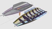 Pocket Foiler - Mario Falci - 15-09-2018 Sto iniziando la costruzione di un 10' con foiler, progetto di Hugh Welbourn. Secondo me una barca piccolissima ha le stesse difficoltà progettuali se non superiori di una più grande perché i tempi di reazione sono ancora minori. La barchetta è stata concepita per poter fare regate anche in dislocante e quindi con qualsiasi condizione di vento, anche leggerissimo ed in qualsiasi andatura. Il sistema per mettere giù i foils è semplicissimo, come con una deriva e non ci sono regolazioni da fare nel frattempo. RE: Pocket Foiler - Mario Falci - 15-09-2018 [hide] RE: Pocket Foiler - Mario Falci - 15-09-2018 [hide] RE: Pocket Foiler - Mario Falci - 15-09-2018 [hide] L'illustrazione spiega i tre modi in cui possono essere usati i foils. - Tutte due su: la deriva si comporta come una qualsiasi barchetta che quindi può partecipare a regate di circolo con percorsi brevi e condizioni di vento quasi nullo. - Tutte e due parzialmente giù: questa configurazione è la più adatta per condizioni difficili con molto vento. I foils NON hanno la funzione di far sollevare la barca facendola volare ma di contrastare il momento ribaltante aiutando il conduttore con una spinta verso l'alto sulla fiancata sottovento. - Giù sottovento: condizioni ideali per il foiling, velocità del vento nel range previsto e quindi sollevamento di tutto lo scafo al di sopra dell'acqua, diminuzione dell'attrito ed aumento della velocità. Il timone ha un piccola ala con incidenza minima che non determina attrito apprezzabile nelle condizioni di poco vento. RE: Pocket Foiler - diodo - 15-09-2018 Molto interessante! Ti seguirò con piacere. Albero in due pezzi per il trasporto? Pocket Foiler - marcofailla - 15-09-2018 bel progetto e lavoro interessante, ti seguo anch'io. c'è già qualche deriva commercializzata con questo tipo di foil e ci sono i video, mi pare si chiami aeronamics Inviato dal mio iPhone utilizzando Tapatalk RE: Pocket Foiler - Mario Falci - 15-09-2018 (15-09-2018, 22:54)marcofailla Ha scritto: bel progetto e lavoro interessante, ti seguo anch'io. In questo caso il progetto prevede un foil molto particolare con un profilo ottimizzato per questa barca. Ha una forma complessa sia frontalmente che in pianta, nel senso che penso faccia una leggera torsione. So anche che Hugh Welbourn stava e sta sviluppando altri progetti di barche con foils di diversa lunghezza e che l'esperienza accumulata anche grazie alle prove in acqua, lo hanno spinto, mentre disegnava per noi, a fare delle modifiche, piccole ma a quanto pare indispensabili per ottenere dei buoni risultati. RE: Pocket Foiler - Mario Falci - 15-09-2018 [hide] RE: Pocket Foiler - Pellicano - 15-09-2018 Sembra un Fireball Pocket Foiler - marcofailla - 16-09-2018 probabilmente con la torsione della sezione unisce la regolazione dell'incidenza della pala con la estrazione della stessa, eliminando una manovra. sono cose che mi piacciono tantissimo ma capisco che solo l'esperienza diretta con una meticolosa prototipazione permette i risultati che vediamo tutti su youtube e che appaiono semplici ma semplici non sono la flessione delle appendici sotto carico é fondamentale, la chiamano black art riferendosi al nero del carbonio e al nero della magia. Sui windsurf, che conosco direttamente, la determinante più critica é la pinna oramai, tavola e vela sono accessori, si vola sulla pinna che deve flettere e torcersi autonomamente disponendosi al meglio secondo l' andatura e la velocità e non é cosa progettabile a tavolino, black art appunto!!! ![]() Inviato dal mio iPhone utilizzando Tapatalk RE: Pocket Foiler - Mario Falci - 17-09-2018 Inserisco un po' di rendering di come verrà costruito lo scafo. [hide] RE: Pocket Foiler - cormax66 - 17-09-2018 Bella ,molto bella deve essere una droga timonarla RE: Pocket Foiler - epoxyfox - 18-09-2018 wow ..m'interessa particolarmente !! RE: Pocket Foiler - Mario Falci - 18-09-2018 [hide] Altri rendering dove si vede meglio la posizione che assume il foil. La scatola che sostiene la pala del timone. Nei disegni si vedono bompresso e gennaker ma si è deciso di armare con sola randa in quanto è già sufficiente per sollevare la barca e per semplificare le manovre. RE: Pocket Foiler - epoxyfox - 19-09-2018 vedo che viene posizionata davanti al centro deriva , come si calcola precisamente la posizione ? c'è una formula rispetto al CV ? RE: Pocket Foiler - Mario Falci - 19-09-2018 (19-09-2018, 09:30)epoxyfox Ha scritto: vedo che viene posizionata davanti al centro deriva , come si calcola precisamente la posizione ? c'è una formula rispetto al CV ? I foil vanno posizionati in funzione del centro di carena che in una barca così piccola é influenzata dalla posizione dello skipper. Il centro di carena è allineato alla risultante dei baricentri di tutti gli elementi che compongono la barca compreso lo skipper. Quando alla spinta dell'acqua si sostituisce la portanza dei folis, se si vuole avere un assetto orizzontale, è necessario che la risultante della portanza del foil di prua e del foil del timone siano allineati sempre al centro di carena. Il rapporto tra le portanze generate tra foil di prua e foil di poppa è di 20-30 a 70-80 circa considerando 100 la portanza totale. Pocket Foiler - marcofailla - 19-09-2018 20-30 % di portanza sul timone mi sembrerebbe tantino, in futuro forse! quando ci si rassegnerà agli armi a cat molto avanzati ci si arriverà. il timone sarà super compensato e lavorerà anche da deriva, le virate saranno più difficili ma le catapulte saranno azzerate. per ora, IMHO, siamo al "monoruota" ottocentesco dicono sia più performante così, ma da quando ho visto il catamarano di petrucci S9 andare al lasco poppa sui foil senza timoniere (caduto durante una abbattuta), io tifo per il quadriciclo ops quadrifoil :-) Inviato dal mio iPhone utilizzando Tapatalk RE: Pocket Foiler - Mario Falci - 19-09-2018 Ciao Marco, il rapporto tra portanze, di cui parlavo pri