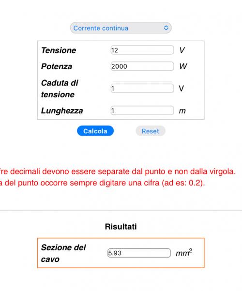 @elan333: caspita cavi da 70mmq, avevo trovato online un calcolatore cavi e mi dava il seguente risultato