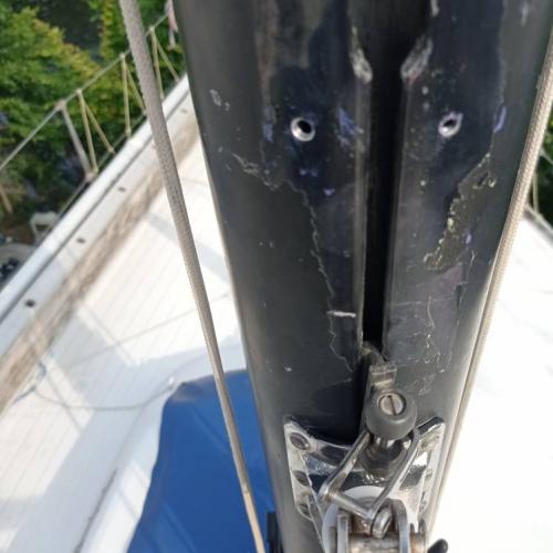 Il titolo anglofono è quello che meglio interpreta l'acrocchio per chiudere le canaline sugli alberi per evitare che i garrocci fuoriescono,a randa ammainata o con i terzaroli presi, ora la devo costruire per un albero Canclini a sezione ovale e canale ingresso da ben 220 mm, a che serviva così lungo poi.