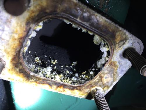 Nel mese di sett. 2019 ho raccontato su questo post il problema che ho avuto con il mio motore Volvo MD22A per una perdita di liquido refrigerante da un foro nato dalla corrosione dello scambiatore vicino alla flangia di uscita fumi ed il collegamento con il riser per cui non mi ripeto ma pongo due domande : prima domanda il forellino da cui usciva il liquido di raffreddamento è stato provvisoriamente riparato con resina bicomponente per metalli( resistente fino a 150 °C ) perchè ero in agosto in sardegna e non era pensabile fare nulla di diverso. Ora la barca è in secca in Liguria (dopo circa 30 ore di motore senza problemi di perdite di liquido) e ho smontato il riser per predispormi a smontare lo scambiatore per portarlo in rettifica e fare riparare la corrosione (peraltro non molto estesa). Ho trovato una situazione perfetta : la resina integra e senza problemi apparenti Mi sono chiesto : ma vale la pena di smontare tutto e portare lo scambiatore in officina? Forse potrei limitarmi a tenere d'occhio frequentemente il livello del liquido e fare una ispezione (ogni xx ore) dello scambiatore (costo un quarto d'ora di lavoro e 5 euro della nuova guarnizione). Cosa ne dite? Seconda domanda Smontando il riser ho notato che le dimensioni del foro di uscita del collettore dei fumi è maggiore di quello di entrata del riser , quindi c'è una sorta di "scalino" così come ho (maldestramente) cercato di rappresentare nello schizzo allegato. A me sembra una grande sciocchezza perchè provoca turbolenza nei fumi e possibile ristagno d'acqua ( che forse da il suo contributo alla corrosione nella zona). E' così?