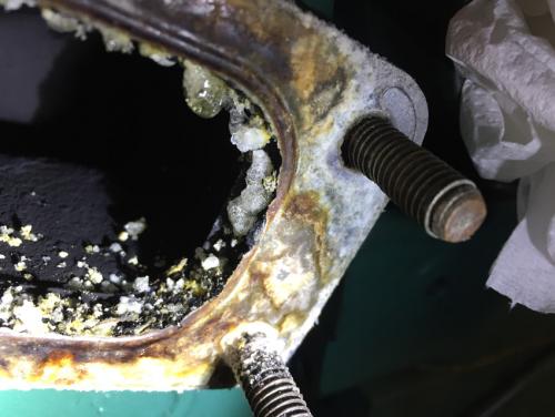 Come già detto, da tecnico e con altri tecnici non ci siamo limitati a scoprire il problema ed a trovarne una soluzione ma, per pura curiosità professionale, ci siamo divertiti a monitorare costantemente la situazione scoprendo alla fine una cosa ovvia, banale ma al tempo stesso assai deleteria a cui non si può porre rimedio (per il momento). Quando spengiamo il motore tutto il circuito è assai caldo tanto da consentire per un ulteriore pochino di tempo l'evaporazione dell'acqua di mare presente nel riser con l'ultimo spruzzo, nelle tubature di scarico e nella marmitta. Ora non essendoci più la spinta di espulsione data dai gas di scarico del motore acceso, questo vapore tende a salire verso l'alto e dalla stessa marmitta viene canalizzato nelle uniche due direzioni possibili: verso l'esterno e verso il motore. L'esterno non ci preoccupa ma quello che sale verso l'interno finisce per depositarsi per condenza sulla parte iniziale del metallo più freddo ed è risaputo che l'alluminio dello scambiatore prima e quello della piastrina poi sono il metallo che si raffredda prima di tutti gli altri. Ecco il perchè la corrosione avviene in quel punto specifico più che in altre parti. In quel punto già sussiste una condizione tutta sua in cui il metallo dielettricamente più debole (l'alluminio) cede per natura elettroni al metallo più forte del riser (in ghisa od in acciaio). A questa condizione si aggiunge il vapore dell'acqua salata che si condenza proprio in quel punto e che costituisce una perfetta soluzione elettrolitica (acqua e sale) che accellera il fenomeno ed a riprova di questo, allego delle foto che evidenziano come, proprio grazie a quel vapore depositatosi a motore spento, si formino i cristalli di ossido di alluminio preludio della corrosione.