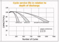 Nelle batterie al piombo la durata è legata al DOD (profondità di scarica) quindi si esprime con cicli di ricarica per ogni DOD o con il grafico cicli/DOD.