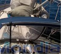 Tanto per, nella mia vi sono due fori nel tessuto della cappottina (non nel trasparente) ed i due fori, uno per lato, sono perfettamente allineati fra gli strozzascotte del trasto ed i winch della tuga.