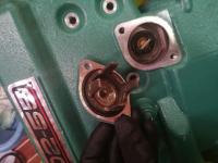 Mi sono procurato o ring, guarnizioni nuove per rimontare e vernice da ritocco originale Volvo. Si inizia reinserendo il fascio tubiero e i relativi o-ring, il termostato ( di cui si dovrebbe provare la taratura come da indicazioni Volvo) e relativi o-ring, poi si monta la guarnizione di scarico nuova e si collega lo scambiatore al blocco.( attenzione ai fili elettrici che scorrono tra le due componenti e che andranno ricollegati al modulo MDI). Si ricollegano tutte le tubazioni, si monta il riser nuovo con la sequenza indicata sopra, il tubo di scarico, il filtro aria. Il nuovo liquido refrigerante Volvo va reimmesso nella percentuale indicata sul manuale del motore.