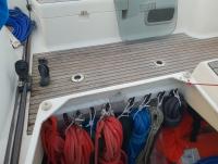 Ho usato il stesso sistema nel gavone di poppa,le cime che servono sono a portata di mano.