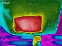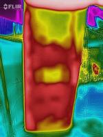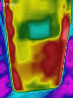 Anche non considerando che lo strumento utilizzato è poco più di un giocattolo, postando quelle immagini hai fatto l'errore che fanno molti principianti con le immagini termiche: non hai riportato la scala termica di riferimento, che serve a determinare la correlazione tra la scala dei falsi colori e le temperature, né la corrispondente immagine visibile, che serve a capire quali sono le condizioni al contorno della ripresa (es presenza o assenza di irraggiamento solare, ombre, etc.). Tali informazioni sono fondamentali per poter correttamente interpretare i risultati della ripresa termografica.