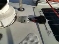 Il pannello che metterai sulla tuga, invece, forse necessiterà di passacavo, ma solo per una questione di estetica, perché i cavi che entrano verticali con curva non sono il massimo (nel pannello sul bimini invece il cavo è parallelo e attaccato al tubolare), ma magari sotto allo sprayhood o in prossimità del binario del suo gratile troverai una zona adeguata che risulti discreta