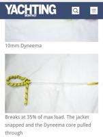 Questi test (ma soprattutto il link al sito Marlow), mi hanno fatto capire l'importanza della calza, l'avevo sempre considerata un elemento di protezione ma di fatto, se si rompe la calza come nella foto, la scotta/drizza diventa inutilizzabile.