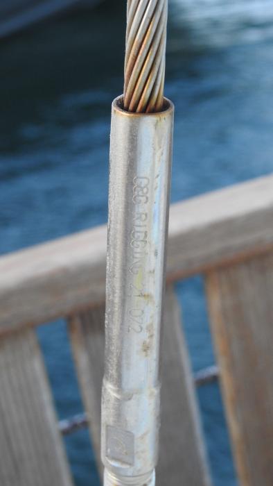 Con un decapante su quelle sartie non si fa nulla. Il problema non è nella sartia, ma nella pressa o nel terminale: uno dei due era contaminato, e di brutto. La lucidatura dipende da una serie di fattori, non solo da decapaggio che è la PRIMA fase della lavorazione, non l'ultima. Correttamente proposto a base di acido fosforico, assolutamente inutile a questo stadio delle cose. Quelle sartie vanno o sostituite oppure rimosse, accorciate, nuovamente incappellate nel loro terminale e recuperate con canaula più lunga. Difficilmente cede la sartia, il problema è appunto nella terminale; mai come in questo caso il problema si pone. Hanno sbagliato, provvedano: io non terrei quelle piombature sulla mia barca. E' mia opinione che il problema, essendo nel punto più delicato della sartia, non possa essere trascurato.