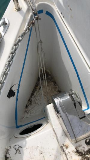 [hide] Per fortuna sotto c’era tanto volume inutilizzato [hide] Quindi si è proceduto al taglio dello stampo/gavone e alla nuova resinatura di un piano di appoggio catena (sono stati creati due ombrinali, prima ne esisteva solo uno) [hide] Adesso si può alare senza problemi e nel nuovo gavone ci va dentro anche i parabordi. Inoltre è ancora rimasto un volume isolato, stagno e ispezionabile dalla cabina di prua al di sotto del gavone. La sola soluzione inox non era comunque sufficiente.