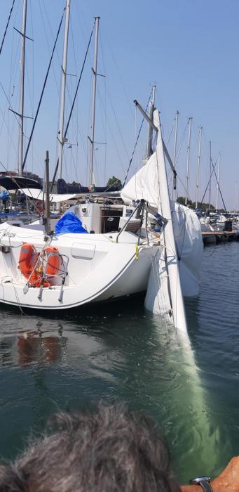 Una cosa mi è incompresibile, la randa ancora in acqua assieme all'albero e la barca all'ormeggio?
