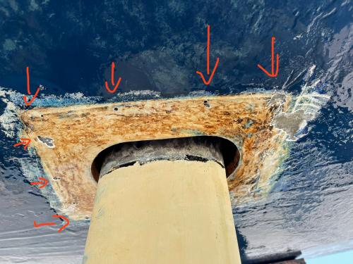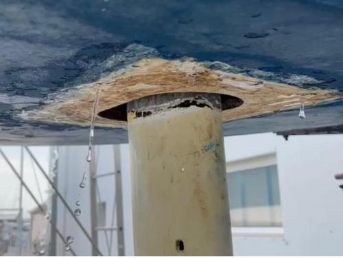 Incredibile! quando ho alato la barca ho rimosso la guarnizione inferiore del sd e sono usciti sotto torno torno una quindicina di fori fatti passanti col trapano. Ho interpellato il precedente proprietario per chiedergli se quando nel 2013 ha sostituito la guarnizione del sd ci fosse stata una cornice di acciaio forata e mi ha confermato di si, lui poi la nuova la ha messa solo incollata. Sciacquando da dentro la barca la sentina con acqua dolce , da sotto sembrava fosse una doccia! Cani due volte i cantieri che han fatto quel lavoro: i primi perché hanno forato facendo fori passanti per avvitare la cornice d’acciaio per bloccare la guarnizione. Secondo lavoro fatto da cani quando hanno incollato la nuova guarnizione senza resinare i fori. La guarnizione col tempo deve essersi iniziata a scollare ed entrava acqua in barca nel controstampo della sella del motore andando poi attraverso i madieri in sentina.