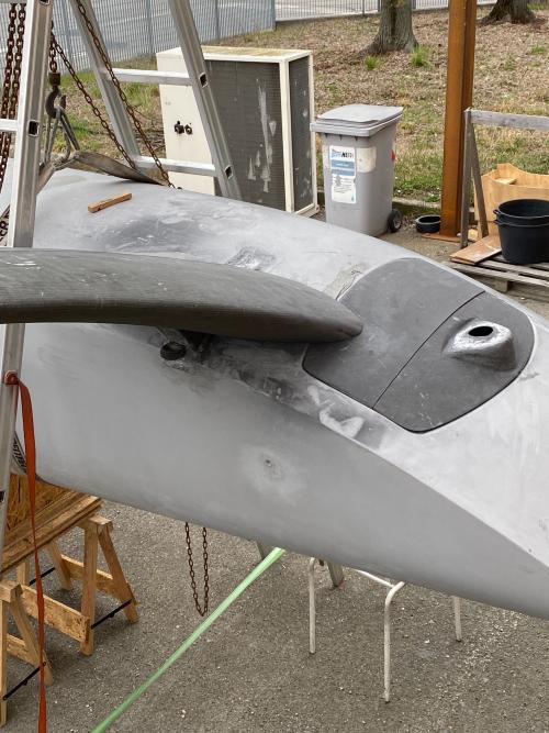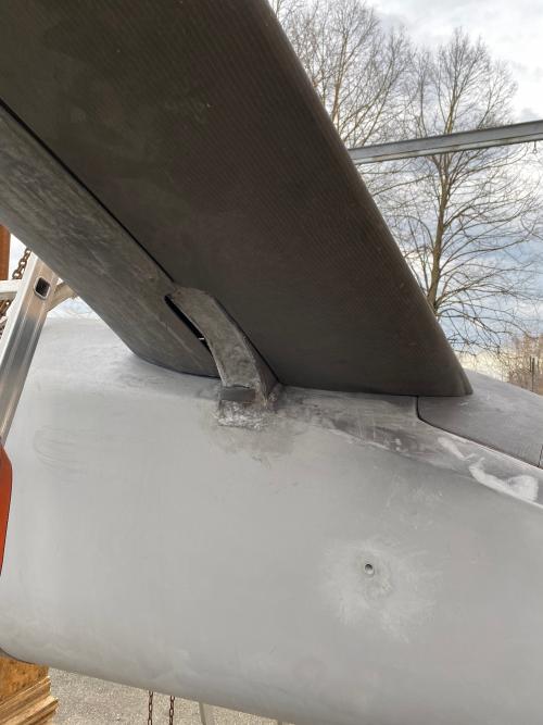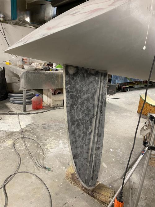 miracoli del cad/cam/cnc senza aggiustamenti o altre modifiche, con quasi 3 anni tra la realizzazione dei timoni e la (quasi ) fine dei galleggianti: il profilo della pala sfiora lo scafo perfettamente
