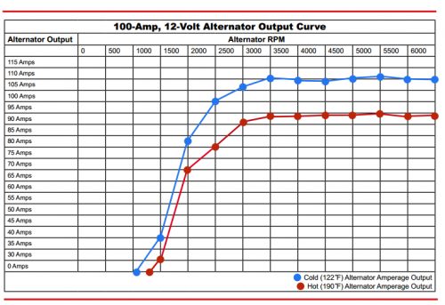 Questo è un altro aspetto che non capisco se è normale o no. Appurato che le batterie sono “stanche” e quindi è da prevederne la sostituzione l’altra questione riguarda l’alternatore che è da 65A. Lo stesso eroga i 65 A previsti ma a 2500 giri. A 1000 o poco più ne eroga parecchi di meno come ho indicato sopra. È normale secondo voi? Dove posso trovare le curve di erogazione potenza in base ai giri?
