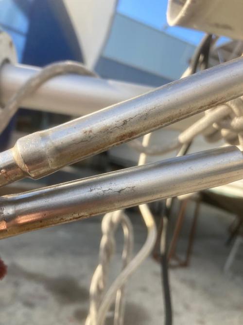 dopo 18 anni ho fatto di nuovo il cambio di tutte le sartie e gli stralli del mio GS35. Togli e rimetti l'albero fatto dal cantiere con la barca in secca per altri lavori, sostiutzione del materiale eseguito, con albero sui cavalletti, da un noto negozio/rigger della zona: spesa complessiva in linea con quanto leggo negli altri intreventi. La regolazione sulla barca la sto facendo da solo, seguo le indicazioni trovate sul forum e non mi sembra di avere difficoltà. Tutto il materiale sostituito era in buono stato, eccetto due arridatoi di cui allego foto, non avevo visto quei segni nel controllo della precedente fine stagione, forse non c'erano o forse non li ho visti io, chissà. Dove ho trovato un pò di usura è stato sull'avvolgifiocco, testa e tamburo, era già sorvegliato ed sono potuto intervenire con calma.