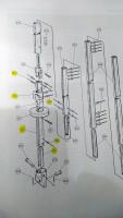 - Un winch nell’albero tramite una coppia di ingranaggi conici fa ruotare il primo pezzo dell’alberino D1 (50 cm); la parte superiore ha una barra filettata che permette di collegare gli altri pezzi del tubo e di dare la giusta tensione verticale; il D12 utilizzando la sede della ralinga scorre e blocca la torsione fra i due pezzi, la vite D10 lo mantiene fermo