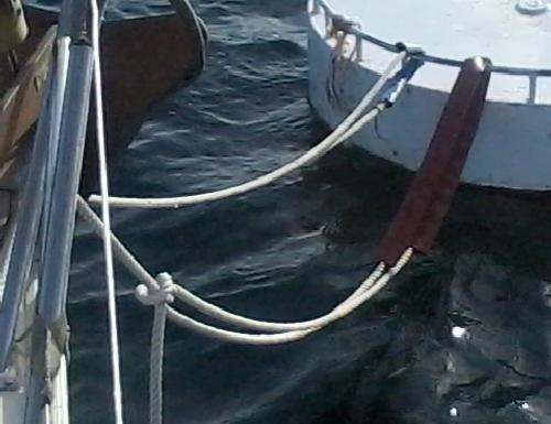 Altro esempio un pezzo tagliato per il lungo con dei buchi per avere un pezzo da poter "cucire" attorno a una cima già installata.