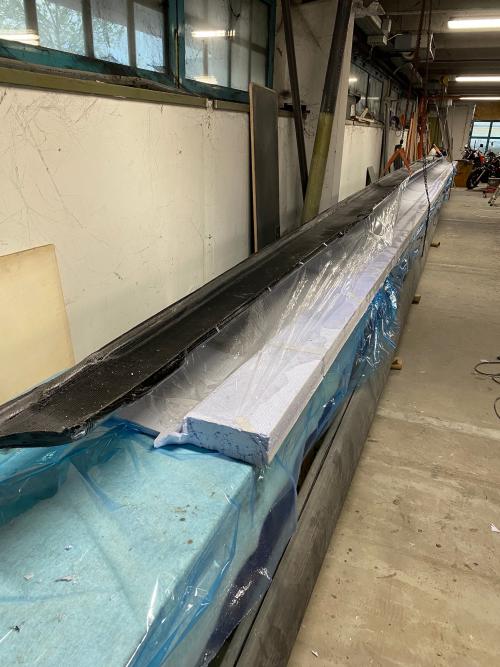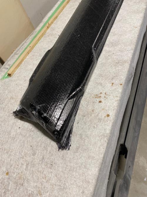 è tutto extra lucido perché per evitare problemi aggiuntivi nel seguire le forme dello stampo (spessori 4/5 mm) ho smesso di mettere il peel play anche sotto tra stampo e pelli, lo metto solo sopra tra pelli e rete ventilante (che altrimenti si appicicherebbe avendo eliminato anche il film distaccante per facilitare l'infusione)