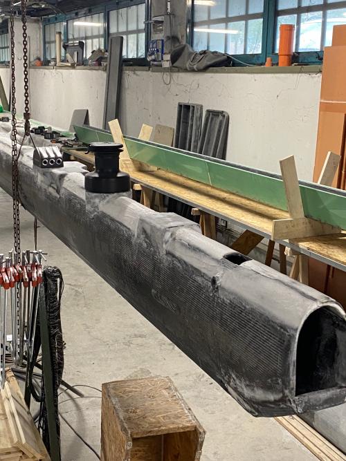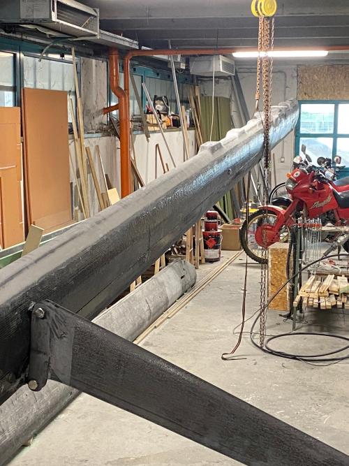 Se il tempo migliora dovrei verniciare il primo galleggiante, poi si rincomincia per finire le travi del secondo.
