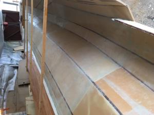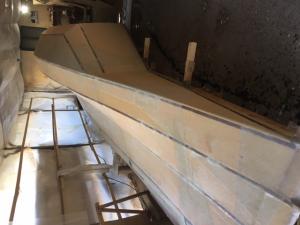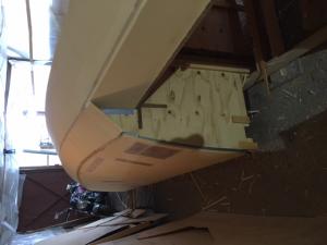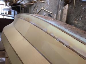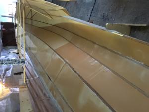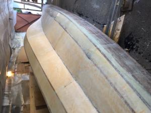 lo vedete a sinistra il legno ? è il teak del paiolato annegato nella stratifica, ci ho messo un pò più di tempo ma mi rimane solo da levigarlo