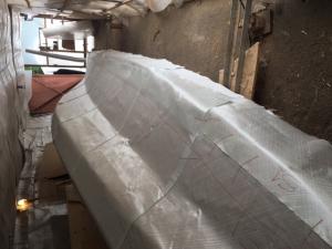 stasera brindo , ho terminato la stratifica dell'ultima parte di poppa che era rimasta ora ho ufficialmente finito di stratificare dentro e fuori, Ci sono andati 2 bobine da 600 gr di quadriassiale praticamente un mare di tessuto e aime relativa resina epox