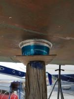 Ovviamente ho prima fatto un montaggio a "secco" per ruotare i passascafo in modo che con le valvole avvitate fino a battuta, le leve di apertura fossero esattamente posizionate. Ho poi segnato, sull'esterno, la posizione per poterle fissare correttamente. Per la sigillatura ho usato lo Zucchini MS Super e mi sono trovato veramente bene; qui una foto di un paio di passascafo dall'esterno dopo averli sigillati e fissati.