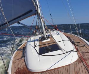 Ecco alcune foto del prototipo (o meglio, dell'esemplare n.1) in porto e in navigazione col gennaker e la volante cazzata.