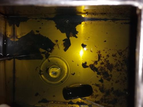 La mattina successiva decido, prima di chiamare eventualmente un meccanico, di capire perché non sono riuscito a spurgare il circuito. Apro lo sportello di ispezione del serbatoio (che era stato sbarcato e pulito a specchio nemmeno 2 anni fa in occasione della sostituzione del motore) e noto delle grosse “pezze” nere sul fondo dello stesso. Inoltre una specie di treccia molliccia pare uscire dal pescante, mentre il prefiltro si presenta con il fondo gelatinoso. Provo a soffiare sul tubo pescante ma questo è completamente otturato, tento allora con la pompa elettrica (4,5 bar) del tender ma senza successo. Infine con una sonda di filo di acciaio (che tengo sempre a bordo) riesco ad avere la meglio. Dal tubo pescante pare uscire un serpente lungo e semi molliccio, una cosa impressionante. Con una pompa adatta allo scopo sbarchiamo tutto il carburante, pulisco il serbatoio, sostituisco il tubo di gomma che va al prefiltro, la cartuccia dello stesso prefiltro ed il filtro gasolio, rimbocco 20 litri da un bidone e…il motore riparte! Ho perso almeno 5 litri in sudore ma sono soddisfatto.