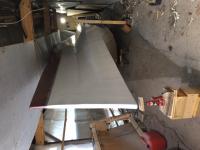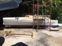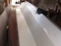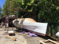 praticamente ho dato 3 mani di antivegetativa al rame e fondo e una prima mano di poliuretanica - ora dovrei girarla ho gia preparato l'attrezzatura lo scafo è molto rigido se sollevo una traversa a poppa si alza anche quella di . mancano ancora alcune ordinate all'interno